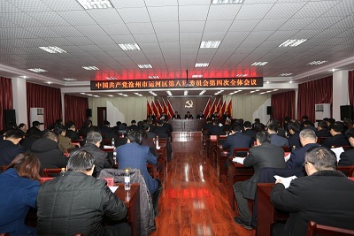 1月4日上午,中国共产党沧州市运河区第八届委员会第四次全体会议在区政府五楼会议室召开,出席会议区委委员41人,区委候补委员8人。会议由区委常委会主持。会议深入学习贯彻党的十九大精神、中央经济工作会议精神、省委九届六次全会精神和市委九届三次全会精神,总结工作,分析形势,对当前和今后一个时期全区各项重点工作作出部署。